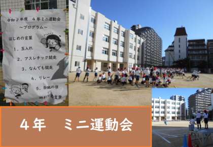 天高く馬肥える秋。5時間目から6時間目にかけて、運動場からハツラツとした声が聞こえてきました。そこには、秋晴れの下、「ミニ運動会」に取り組む4年生の姿がありました。