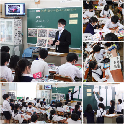 4時間目、社会の学習。自動車工場の仕組みや工夫について学んでいました。