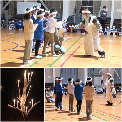 火の神を迎えて、厳かに。燭台のロウソクに、炎がともされました。