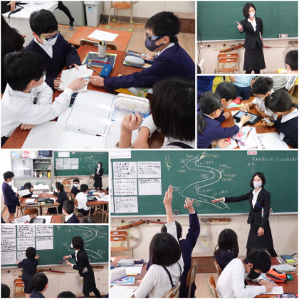 2時間目、理科の学習。地面を流れる水の働きについて学習していました。
