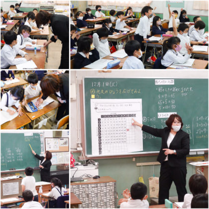 5時間目、算数の学習。九九の応用問題に取り組んでいました。