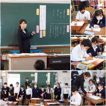 5時間目、国語の学習。行動や気持ちを表す言葉を使った文づくりをしていました。