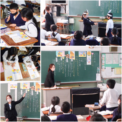「くりのみ」は、きつねとうさぎのお話です。最後の場面、きつねは涙を流します。子どもたちは、役割演技で表現したり、自分の経験を思い出したり、ペアで意見を交流したりしながら、きつねの涙のわけを、そしてあたたかい心とはどんな心なのか考えていました。