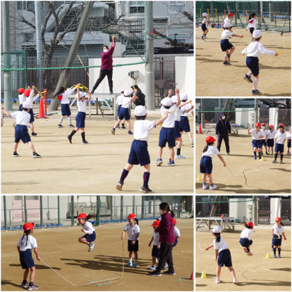 続いて長なわ。8の字跳びにチャレンジです。入るタイミング、跳ぶタイミングが難しい!