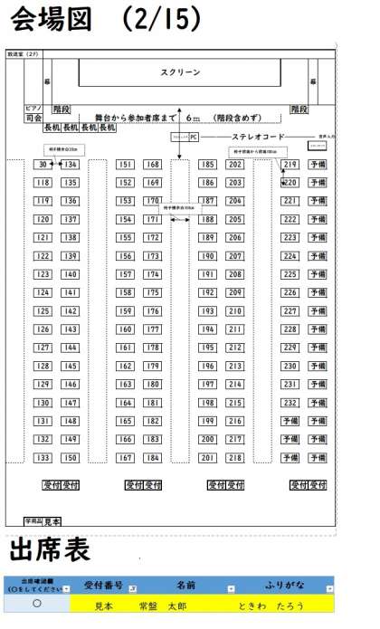 15日については、受付番号118〜232の方、2/10に欠席された方が対象です。どうしても都合がつかず、欠席される場合は、事前にご連絡ください。