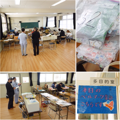 ベルマーク集計作業中に、ベルマーク教育助成財団広報部の方が取材に来られました。