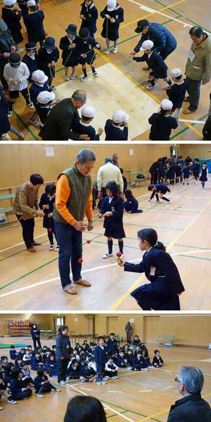 子どもたちは、みんな一生懸命。難しい技のやり方を教わっている子もいましたね。地域の方に遊び方やコツを教わって、“むかしあそびの名人”になれたかな?