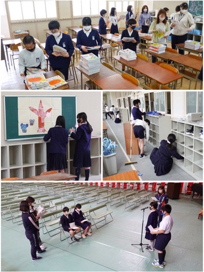 進級して最初の仕事が、今日の準備作業。会場設営、清掃、教室の飾り付け、教科書の運搬・仕分けなどなど、内容は多岐にわたりましたが、分担してテキパキとこなしていました。
