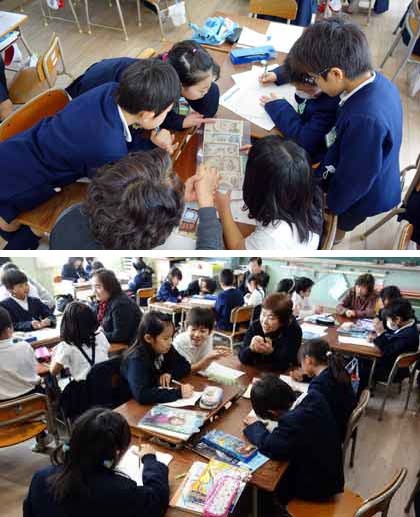 地域のみなさんには、班に1人ずつ入っていただきました。子どもたちは、事前に聞きたいことをメモしていました。始まるやいなや質問攻勢です! 知りたかったことがたくさん分かったことでしょう。