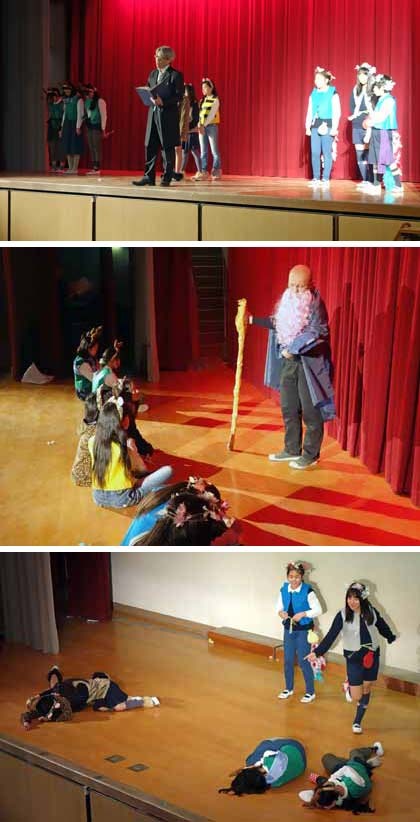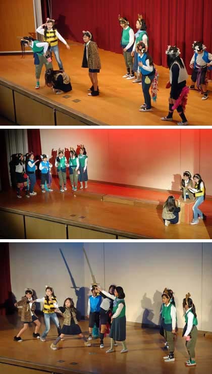 今年のクラブ発表会、最後を締めくくるのは演劇クラブ。公演作品名は「希望の剣(つるぎ)」です。3つの種族(龍族・トラ族・鳥族)が、世界を救うことができるという“希望の剣”を求めて旅をする話です。