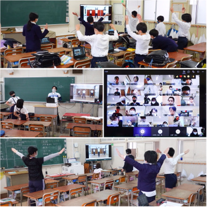 Teamsでラジオ体操動画を配信。動画は、昨年、常盤小学校で制作したものです。動画を見て、ポイント解説を聞きながら体を動かしました。