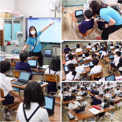 2時間目、1人1台学習者用端末(タブレット端末)を操作する6組の子どもたちです。