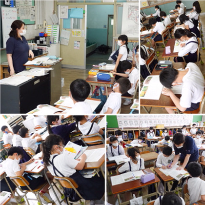 2時間目、国語の学習。「自然のかくし絵」という説明文を読み深めていました。