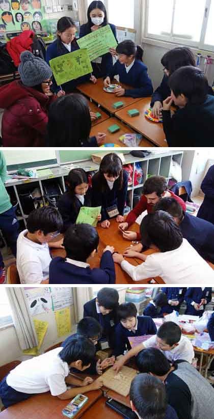 クラスでの話し合いの結果、けん玉やコマ回し、切り紙、坊主めくり、トントン相撲などなど、昔ながらの日本の遊びを体験してもらおうということになったようです。遊びごとにコーナーを作って、留学生のみなさんにローテーションで体験してもらっているクラスが多かったですね。