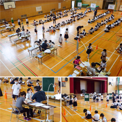 9:00開始で、昼食をはさみ、14:00過ぎに終了。4人の歯科医師の先生方は、単純計算で1人あたり300人以上の児童の検診をしていることになります。本当にお疲れ様でした。