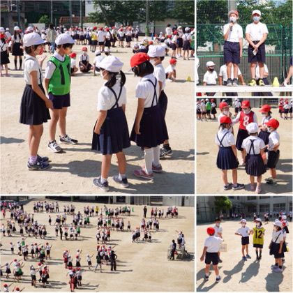 6人前後のグループごとで集合。今回は、1回目の活動だったので、自己紹介と、グループじゃんけんでした。4年生の児童が、グループ活動をリードしていました。