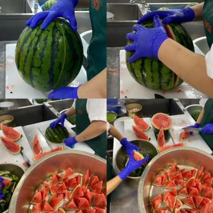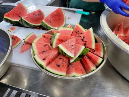今日の給食は、年に1度のすいかが登場。