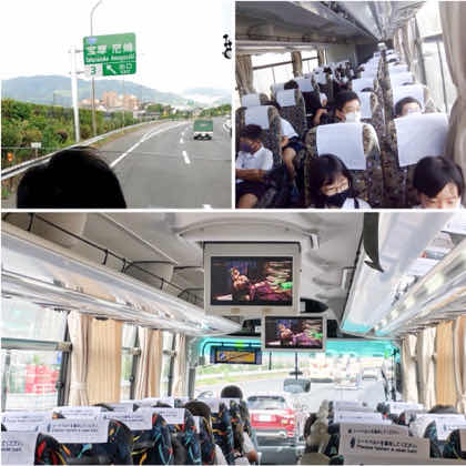 車内では、ビデオを見ながらゆったりと過ごしています。乗り物酔いも大丈夫そう。