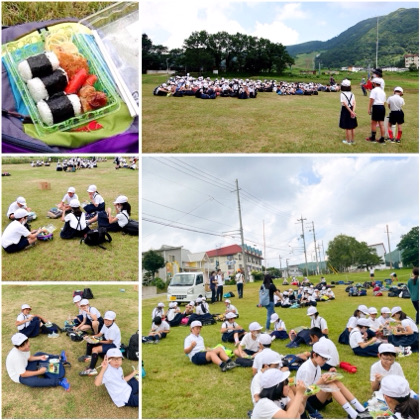 広々とした芝生ゾーンでお弁当。おいしくいただいているようですね。
