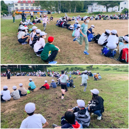 上の写真は、ハンカチ落としをしているところです。230人でハンカチ落とし、ハンカチを落とされた子は、むしろラッキー!