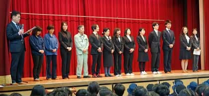 まずは着任式。4月に着任した教職員の紹介がありました。15名が4月から常盤小学校の教職員になりました。