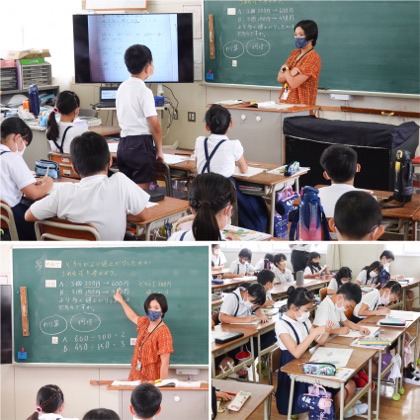 2時間目、算数の学習。値段の上がり方を比べていました。