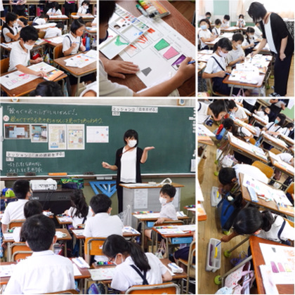 2時間目、図工の学習。絵の具の使い方を学んでいました。