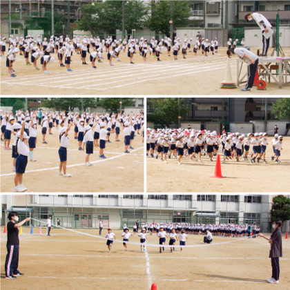 1時間目、学年別運動会の練習。開会式・閉会式の練習と、並び方や動き方の確認をしていました。