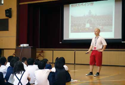 3時間目、講堂で修学旅行のオリエンテーションが行われました。6年生の先生方は、春休み中に現地に下見に行っています。6組担任のN先生が、その時に撮った写真をスクリーンに映しながら、1泊2日の活動を説明していました。子どもたちは、「いよいよ!」「楽しみ!」という気持ちになったことでしょう。