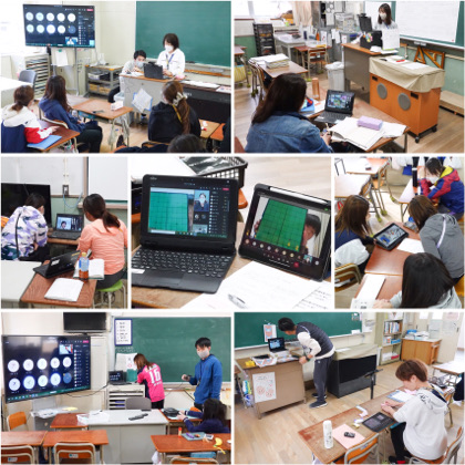 学習者用端末(タブレット端末)を家庭に持ち帰り、教室と家庭をネットでつなぎました。今回は、「つながること」「慣れること」に加えて、2年生以上は「双方向のやりとりができること」を意識した学習でした。