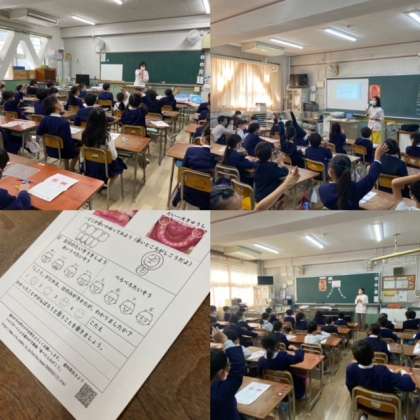2時間目と3時間目、歯科衛生士の先生方が教室に来て歯みがき指導をしてくださいました。