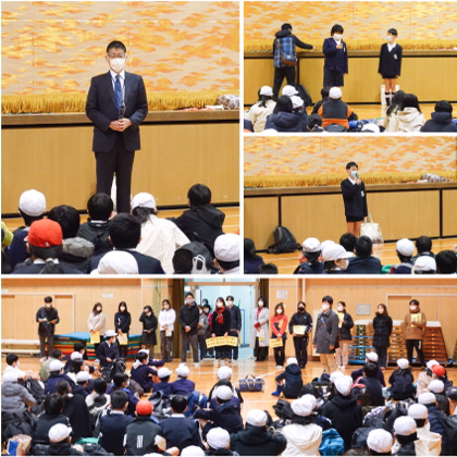 17:30、5台のバスが次々に学校前に到着。そのまま講堂に入って帰校式を行いました。(保護者の皆様、帰校が遅れてしまい、ご心配・ご迷惑をおかけしました)