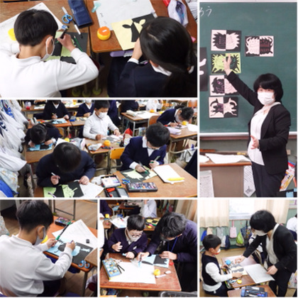 5時間目、図工の学習。画用紙を使った切り紙に取り組んでいました。「見たことのないおばけ」がテーマです。さて、どんなおばけが誕生しますか。