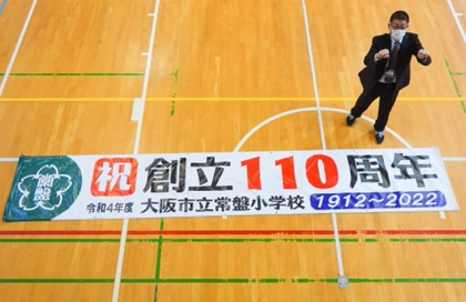 15日(金)の記事の写真は、横断幕です。学校創立110周年記念の、2枚の横断幕が届いたのです。