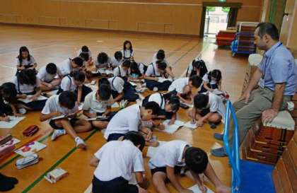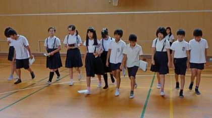 今は水泳学習期間なので、講堂は空いている時間が多いです。空家の講堂を4時間目に使っていたのは、5年3組です。