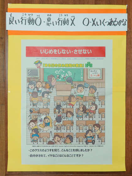 9日(月)は、今年の常盤小学校の「いじめについて考える日」でした。児童のみなさん、いじめについて、友だちについて、自分のこととして考えてみてください。(左上の写真は、校長室前の掲示物です。○と×、いくつ見つかったかな?)