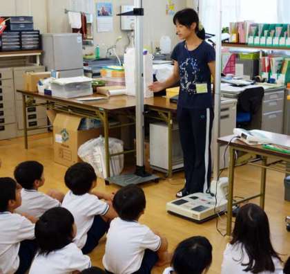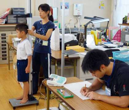今日から“発育測定ウィーク”です。1日に1学年ずつ身長と体重を測ります。今日は1年生でした。