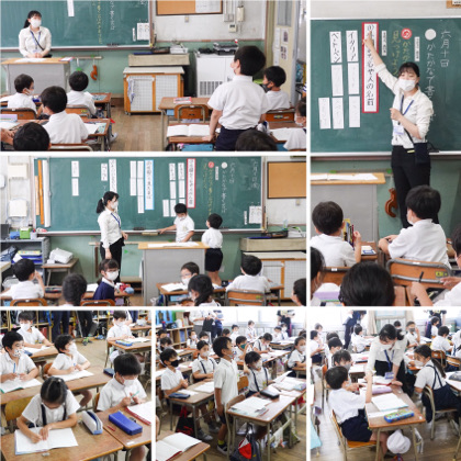 3時間目、国語の学習。かたかなで書く言葉について学んでいました。