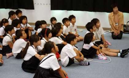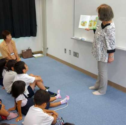 今日は本の読み聞かせの日。いつもは6年学習室(旧低学年学習室)なのですが、今日は本校のパソコン室でしていただきました。