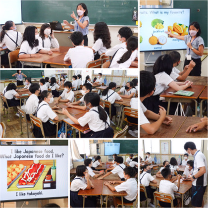 3時間目、英語の学習。8月から常盤小学校担当となったC-NETのM先生と、初のコンタクト!英語クイズで楽しみました。