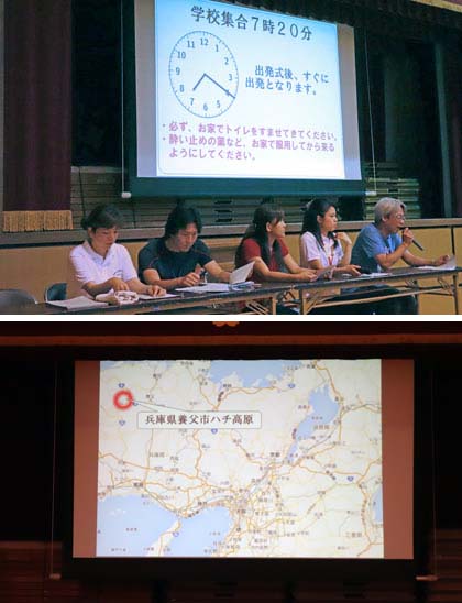 7月28日(火)〜30日(木)の2泊3日、兵庫県養父市のハチ高原へ行く5年生。活動予定や持ち物、注意点などの説明がありました。泊まるホテルや、活動場所の写真がスクリーンに映されていたので、保護者のみなさんも林間学習をイメージしやすかったのではないかと思います。準備をよろしくお願いします。