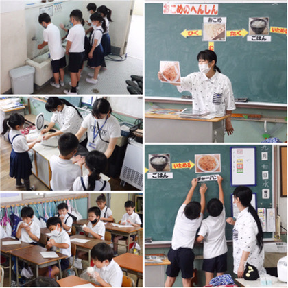 お米は、「炊く」「蒸す」「挽く」「煮る」「炊いてからいためる」等することで、いろいろな料理になります。おむすび、お赤飯、おもち、チャーハン、おかゆなどなど。「これもお米を使った料理だったんだ!」と、新たな発見もあったようです。