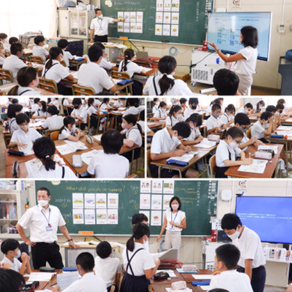4時間目、外国語(英語)の学習。夏休みの出来事について、英語での表現の仕方を学んでいました。