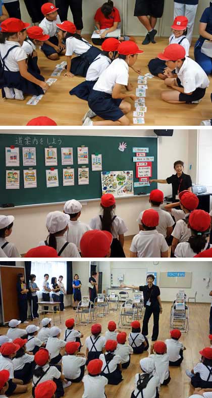 6時間目、4年2組で教員対象の参観授業(教員の研修)が行われました。水曜日は全学年5時間授業の日ですが、4年2組だけ6時間も授業を行いました。今年度の本校の研究教科である外国語活動の授業です。