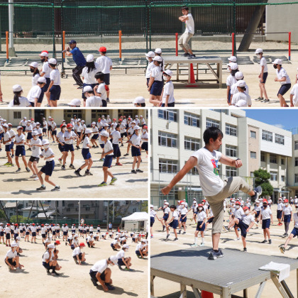 2組担任のY先生と、6組担任のK先生が、前に立って演技指導と指示をしていました。最高学年の演技に、期待大です!