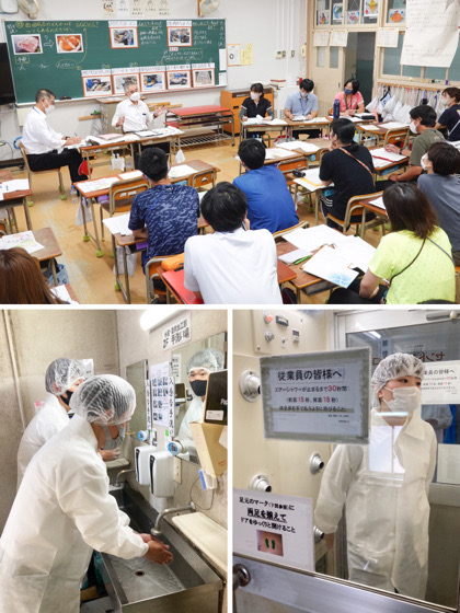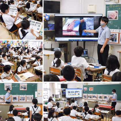 3年生は、今、「工場ではたらく人びとの仕事」について学習していますが、この時間は、校区内にある「株式会社曲田商店(まがたしょうてん)」の「とんかつがどのようにしてつくられるのか」について調べました。