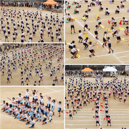 「おうえん合戦」で幕が開いた4年生の運動会。走競技は、「一人でも最後まで走り抜け(個人走)」「とんでくぐって走りぬけ(障害物走)」「みんなでつなげ、心のバトン(リレー)」の3種の中から1つ選択。タイトルどおりの走りはできましたか?
