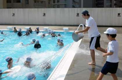 2時間目は、2年生のプール納め。初めに、2回目の記録会をした後、自由練習タイムに。