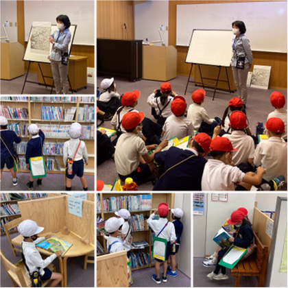 見学させていただいたのが開館前の時間だったので、自分たち以外は誰もいません。子どもたちは、広々とした図書館に興味津々、目を輝かせながら見て回っていました。興味のある本を見つけて読んでいる子もいましたよ。