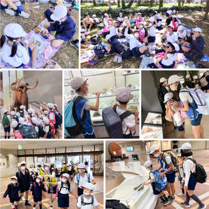 1年生と6年生のたてわりペア班で活動しました。「どんぐり拾い」「自然史博物館の見学」「お弁当」「自由遊び」の4つが、現地での主な活動です。